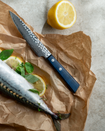 Blue Breeze är Yaxells senaste knivserie. Serien är ett perfekt val för dig som vill påbörja din resa i köket med högkvalitativa knivar, utan att för den skull kompromissa med kvalitet och design. Bladet är tillverkad av Movax-stål, vilket är ett slitstarkt stål som håller sig vasst länge och är enkelt att underhålla. Det är hamrat och slipat i nederkant, vilket ger knivarna en vacker karaktär. Hårdhetsgraden är 58 HRC.