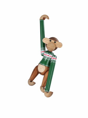 Original julmagi med en stilren och modern touch. Med den alltid leende Kay Bojesen-apan i en unik julutgåva, iförd en vacker grön jultröja, vävs historien om Kay Bojesens världsberömda designikon ännu närmare samman med våra mysiga jultraditioner. Kay Bojesen Apa Jultröja 2025 är tillverkad i den välkända, vackert oljade kombinationen av FSC®-certifierad teak och kontrollerad limba och finns både i denna klassiska lilla storlek på 18,5 cm och i miniutgåvan på 9,5 cm i höjd.
