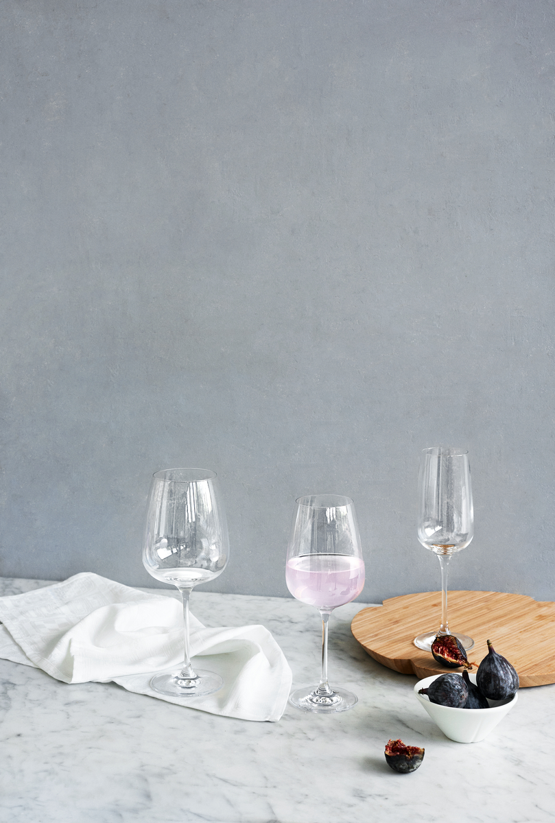 Rödvinsglaset har betydelse för smaken på vinet. Om du bara ska välja ett glas till rött vin passar det tulpanformade bordeauxglaset till många typer av viner. Glasets form ger vinet plats att utvecklas och koncentrerar doften. Med sin enkla design kan glaset användas tillsammans med många olika serviser. Rosendahl