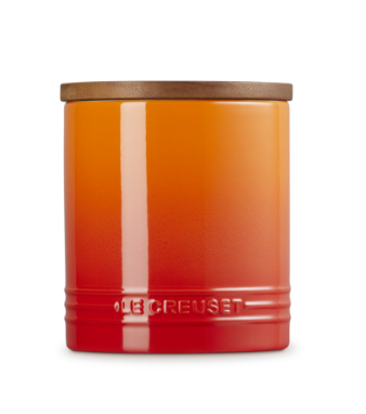 Den här förvaringskrukan från Le Creuset finns i fyra storlekar och har ett elegant lock i akaciaträ och en tätningsring i silikon som håller innehållet fräscht och skyddat från fukt. Perfekt för förvaring av te, kaffe, socker och läckra snacks! Komplettera din samling och få extra förvaring med vår snygga bestick- och redskapskruka.