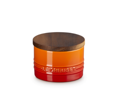 lecruset le cruset creuset lecreuset le creuset cruset förvaringsburk burk med lock gjutjärnsburk matförvaring matförvaringsburk matbehållare orange
