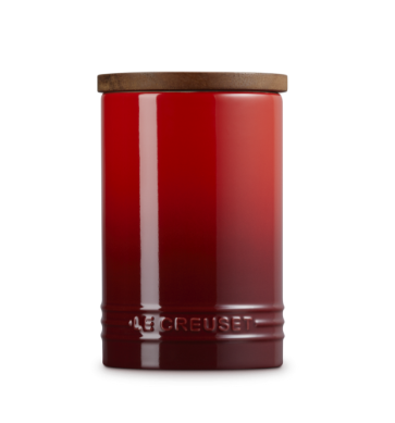 Den här förvaringskrukan från Le Creuset finns i fyra storlekar och har ett elegant lock i akaciaträ och en tätningsring i silikon som håller innehållet fräscht och skyddat från fukt. Perfekt för förvaring av te, kaffe, socker och läckra snacks! Komplettera din samling och få extra förvaring med vår snygga bestick- och redskapskruka.