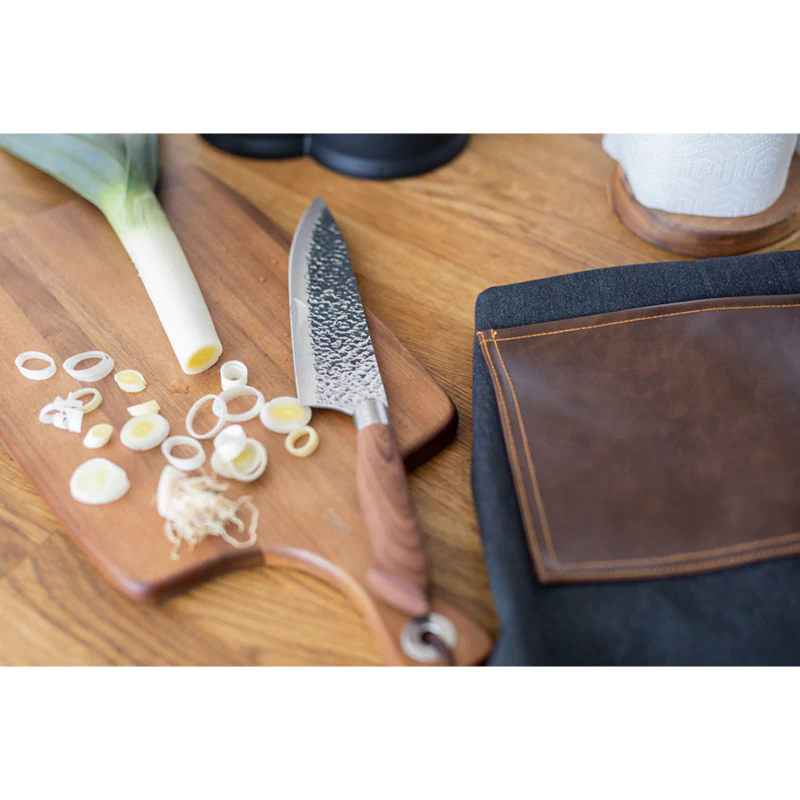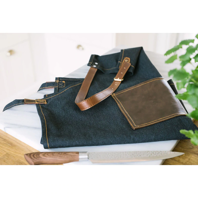 Alla mästerkockar behöver ett förkläde av hög kvalitet i köket. Förklädet Elena i slitstarkt jeanstyg med detaljer i konstläder skyddar dina kläder mot såväl spill som stänk.