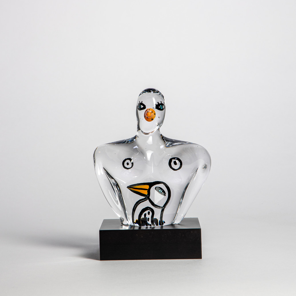 Årets Husgud är inspirerad av nymfparakiten Petito, som är en återkommande inspirationskälla i Ulricas objekt. Fågeln bodde hos familjen Hydman Vallien och flög fritt mellan deras axlar. En dag försvann Petito när en plötslig åskknall skrämde iväg honom. Han kom aldrig tillbaka. Husgud är ett fint samlarobjekt som har tillverkats varje år sedan 2019 präglat av Ulricas olika inspirationskällor.