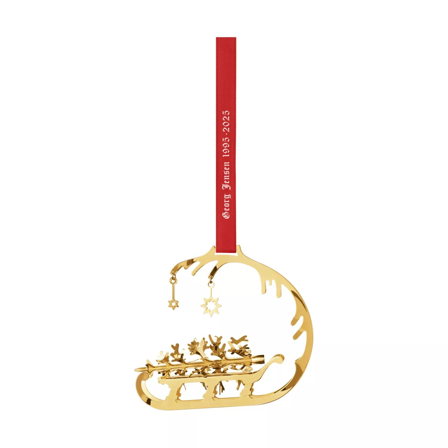 Den här charmiga julmobilen från Georg Jensen skapades ursprungligen 1995 av den danska formgivaren Lene Munthe, och 2025 släpps den på nytt för att fira julmobilens 30-årsjubileum. Det vackra och tidlösa motivet – en släde med en gnistrande julgran – fångar den mysiga julstämningen. Julslädens stilfulla silhuett övergår i en grangren, vars fina stjärndekorationer fångar och sprider ett mjukt ljussken.