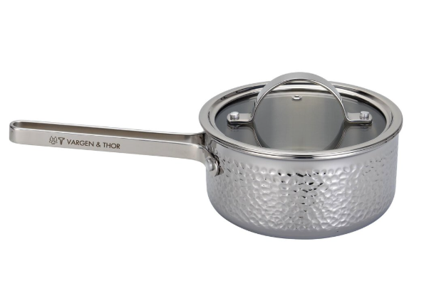 Kroma Teddy från Vargen & Thor är en slitstark kastrull med hamrad yta i rostfritt stål och en värmeledande aluminiumkärna för snabb uppvärmning. Den har värmesäkra handtag, ugnstålighet upp till 300°C och fungerar på alla hällar. Glaslock ingår.