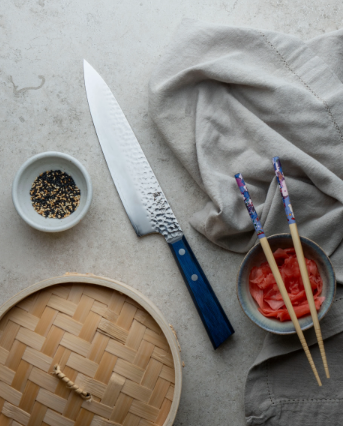 Blue Breeze är Yaxells senaste knivserie. Serien är ett perfekt val för dig som vill påbörja din resa i köket med högkvalitativa knivar, utan att för den skull kompromissa med kvalitet och design. Bladet är tillverkad av Movax-stål, vilket är ett slitstarkt stål som håller sig vasst länge och är enkelt att underhålla. Det är hamrat och slipat i nederkant, vilket ger knivarna en vacker karaktär. Hårdhetsgraden är 58 HRC.