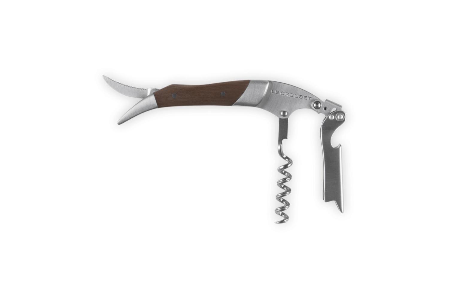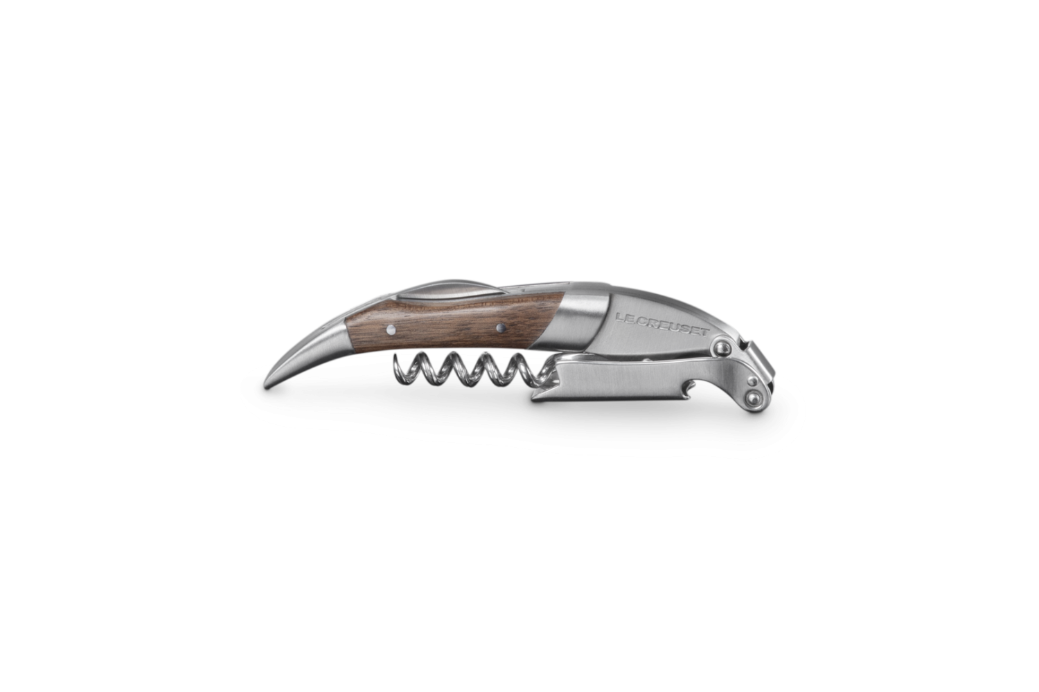 Vinälskare vänder sig till den kompakta servitörens vän korkskruv för enkel öppning av flaskor. Dess slanka design ger utmärkt hävstång, och dess innovativa, enkla ettstegsöppning tar flasköppningen till nästa nivå. Med ett lyxigt svart valnötshandtag för ett bekvämt grepp innehåller det också en inbyggd folieskärare och flasköppnare.