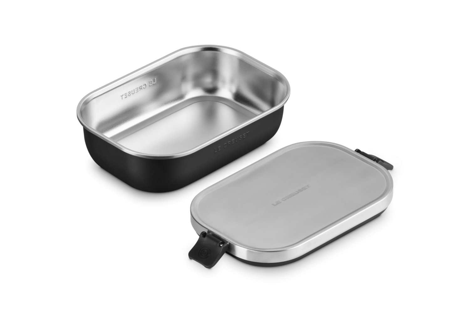 On The Go-matlådan från Le Creuset är en daglig nödvändighet som du inte kan lämna hemmet utan. Kapaciteten är perfekt för en måltid och den rektangulära formen är perfekt för smörgåsar eller sallader. 3-i-1-designen gör den idealisk för att bevara rester, förvara ingredienser och ta med mat på resan. Interiören och exteriören av rostfritt stål gör den lätt att rengöra.