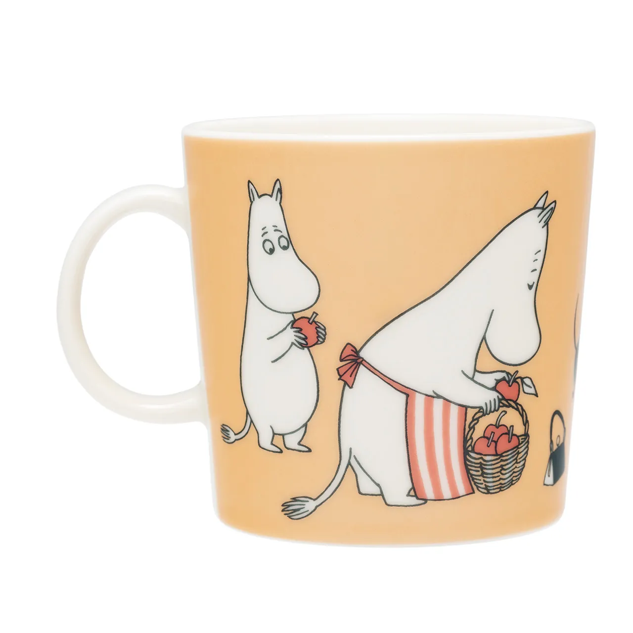 På muggen X träffar du Misan när hon plockar äpplen åt muminfamiljen. Misan lämnar plockningen på hälft när hon blir frustrerad över ett litet misstag hon gjort. Till slut får hon hjälp av Muminmamman. Genom att kombinera olika alfabetsmuggar på 0,4 liter kan du duka bordet med betydelsefulla ord.