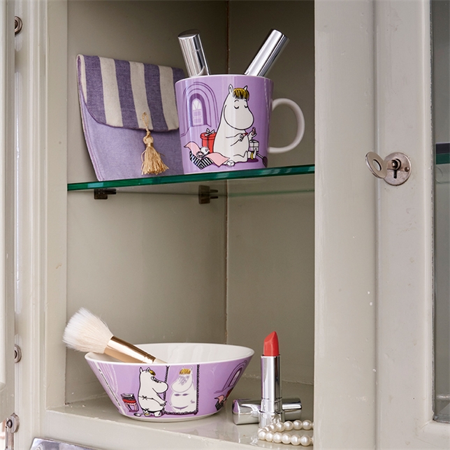 Snorkfröken charmar och tycker om att bli charmad. Hon är kvinnlig och fåfäng men även hurtig och kvicktänkt. Hon provar en bikini men spegelbilden faller henne inte i smaken. Snorkfröken visar sina känslor genom att byta färg. Moomin by Arabia,