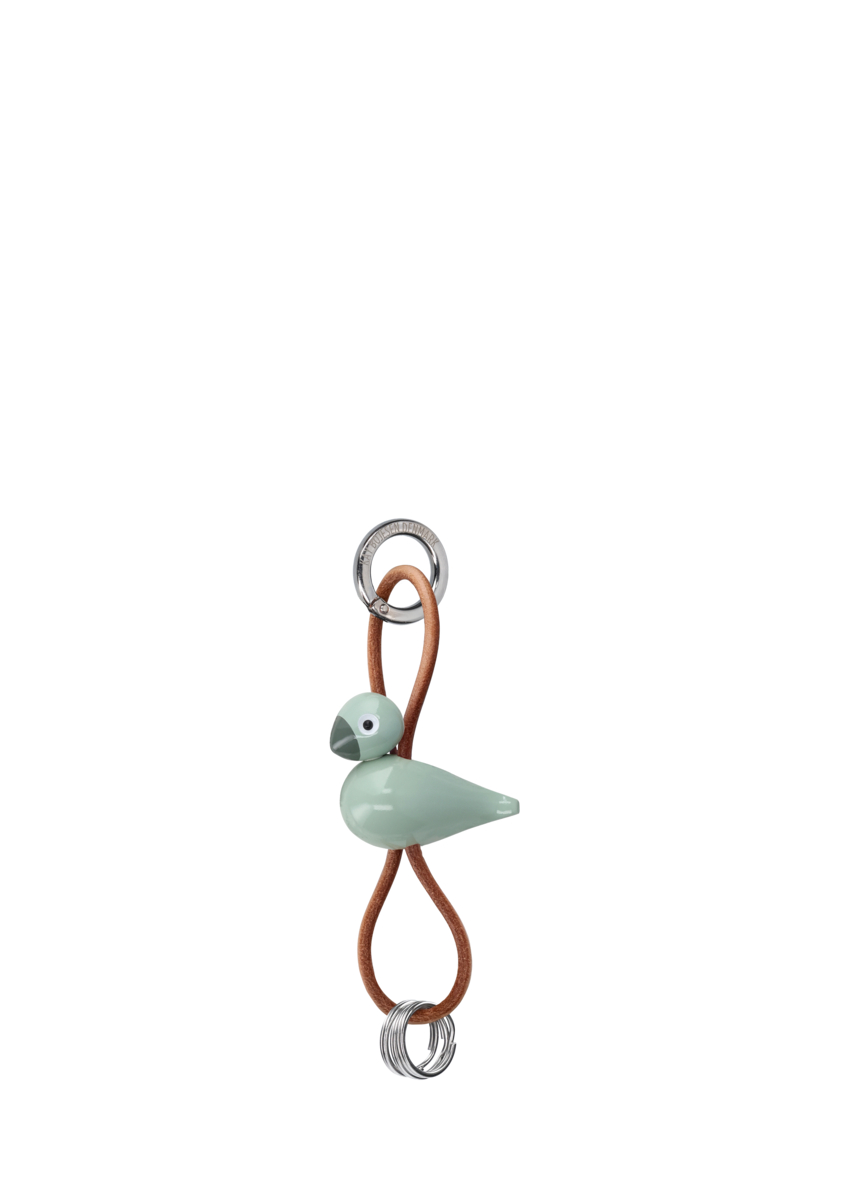 Ta med dig Kay Bojesens älskade klassiker och din kärlek till original dansk design överallt. På väskan. På bältet. Eller med bilnycklarna. Denna Kay Bojesen-nyckelring har en grön sångfågel i miniatyrutgåva, tillverkad i FSC®-certifierad bokträ, och kompletteras med en elegant och praktisk snodd i äkta läder. Snodden kan justeras upp och ner i förhållande till figuren, så att du kan skapa ditt helt egna uttryck. Överst sitter en stor silverfärgad nyckelring graverad med Kay Bojesen Denmark, som både fungerar som en stilren detalj och en praktisk funktion med sin smarta karbinhake för enkel öppning och stängning. Under figuren hänger tre extra nyckelringar, så att du har gott om plats för alla dina nycklar.