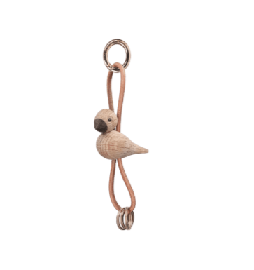 Ta med dig Kay Bojesens älskade klassiker och din kärlek till original dansk design överallt. På väskan. På bältet. Eller med bilnycklarna. Denna Kay Bojesen-nyckelring har sångfågeln i miniatyrutgåva, tillverkad i FSC®-certifierad ek, och kompletteras med en elegant och praktisk naturfärgad snodd i äkta läder. Snodden kan justeras upp och ner i förhållande till figuren, så att du kan skapa ditt helt egna uttryck. Överst sitter en stor guldfärgad nyckelring graverad med Kay Bojesen Denmark, som både fungerar som en stilren detalj och en praktisk funktion med sin smarta karbinhake för enkel öppning och stängning. Under figuren hänger tre extra nyckelringar, så att du har gott om plats för alla dina nycklar. Med en stilren och dekorativ nyckelring från Kay Bojesen Denmark kan du enkelt ge vardagen en personlig touch och ta med original dansk design vart du än går – oavsett om du väljer denna version med den klassiska sångfågeln eller den legendariska apan som din alltid trogna följeslagare. Kay Bojesen var en mästare på att tillföra små detaljer till sina träfigurer. Han fann magin i naturens eget material, och med sin enastående talang för formgivning tog den ena lekfulla figuren efter den andra form i hans fantasi och blev levande i hans händer. Två av hans största klassiker är utan tvekan apan och sångfågeln. Och även om sångfågeln i denna nyckelringsversion har skalats ner till endast 4,5 cm i höjd, bär den fortfarande med sig ett rikt arv av Kay Bojesens designhistoria vart du än går. Kay Bojesen skapade sin första träfigur 1922 och öppnade tio år senare butik och verkstad på Bredgade i Köpenhamn. Sedan dess har Kay Bojesen varit synonymt med original dansk design och ett lekfullt universum av ikoniska träfigurer, skapade med ett enastående öga för detaljer, humor och glädjen i unikt kvalitets-hantverk. Det är därför vi säger att Kay Bojesen har varit original sedan 1922. Nyckelringen levereras i en återanvändbar non-woven-påse och är försedd med en Kay Bojesen-tag.