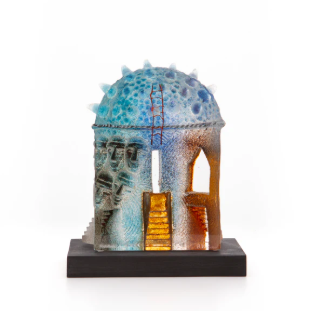 Opening är en av Bertil Valliens mycket uppskattade sandgjutna portaler. Den gyllene trappan under den taggiga kupolen är gjord med en skulpterad sandkärna pudrad med amberfärg, vilket är det enda som blir kvar efter bränning, när sanden har smält. Opening är tillverkat på Kosta Glasbruk. Begränsad upplaga