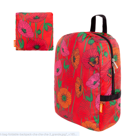 Ryggsäck Ihopfällbar Röd Med Vallmo