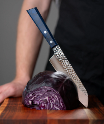 Blue Breeze är Yaxells senaste knivserie. Serien är ett perfekt val för dig som vill påbörja din resa i köket med högkvalitativa knivar, utan att för den skull kompromissa med kvalitet och design. Bladet är tillverkad av Movax-stål, vilket är ett slitstarkt stål som håller sig vasst länge och är enkelt att underhålla. Det är hamrat och slipat i nederkant, vilket ger knivarna en vacker karaktär. Hårdhetsgraden är 58 HRC.