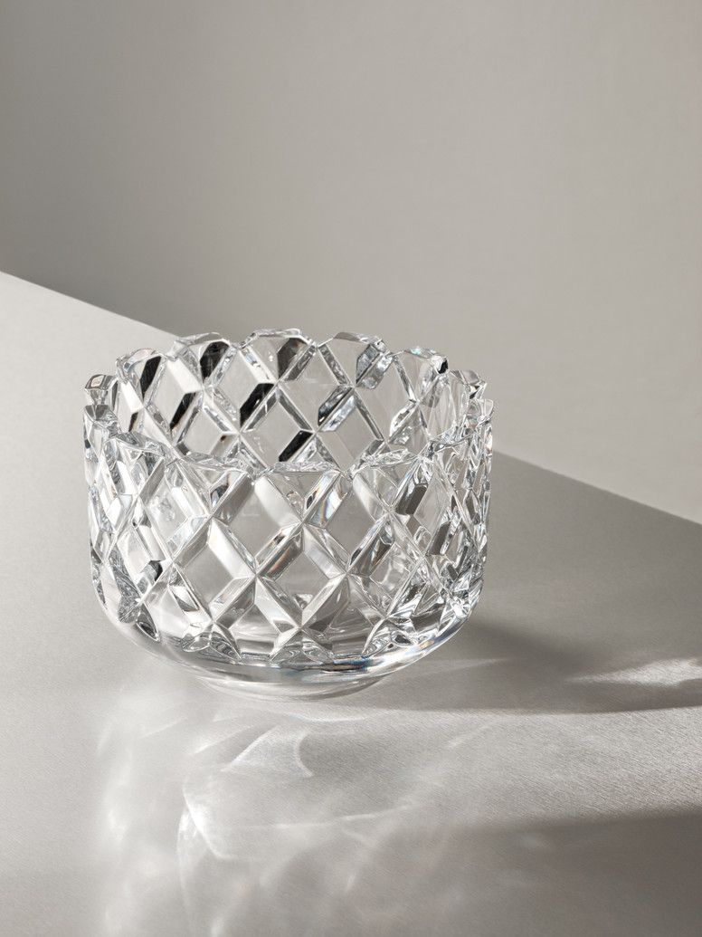 Den stora skålen i serien Sofiero från Orrefors formgavs av Gunnar Cyrén år 1960. Seriens eleganta slipmönster skapar en vacker ljusbrytande effekt i kristallglaset.