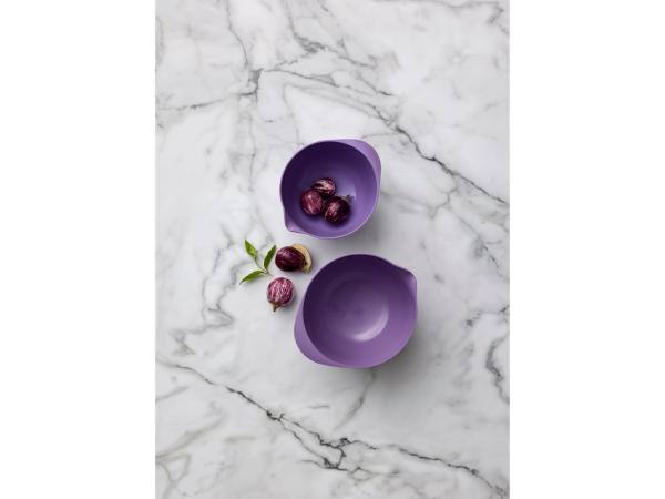 Margrethe-skålen lämpar sig för både tillredning och servering, och genom att köpa till ett lock kan blandningsskålen användas som praktisk förvaringsskål.