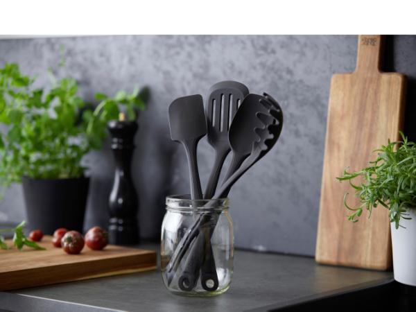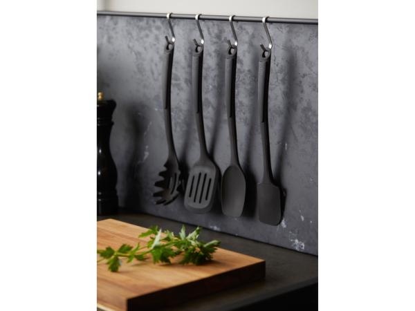 Degskrapan är gjord av metall med en silikonbeläggning som ger ett bra grepp när du ska blanda ingredienserna eller skrapa av deg från en skål.
