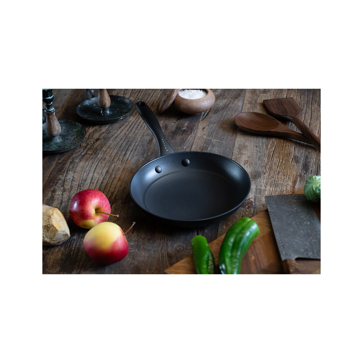 Succen med Satake Lättviktsgjutjärn Honecomb lyfter nu till en ny nivå för nu lanseras den nya serien med en keramisk non-stickbeläggning som är fri från tillsatt PFAS, syntetiska material och tunga metaller. Ytterligare en nyhet är de mattsvarta handtagen och detaljerna. Kanske världens snyggaste traktörpanna? Den honeycombmönstrade ytan fördelar värmen jämnt och ger en perfekt yta på råvarorna. En superb panna för alla typer av stekning – grönsaker, fisk och kött.