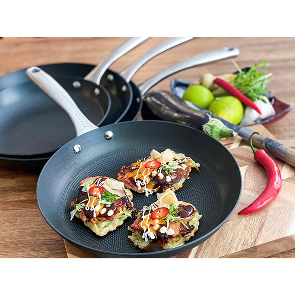 Satakes serie med kastruller och stekpannor har fantastiska egenskaper. Kastrullerna och stekpannorna är tillverkade i lättviktsgjutjärn med Honeycomb Whitford Xylan-beläggning. Whitford Xylan Coating är en patenterad non-stickbeläggning som utklassar allt vi tidigare provat.