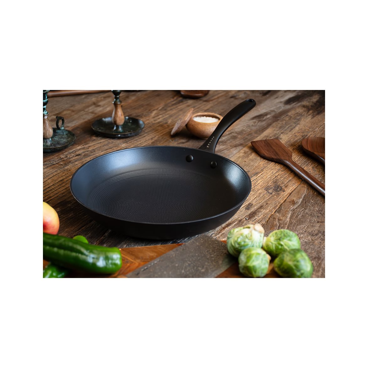 Succen med Satake Lättviktsgjutjärn Honecomb lyfter nu till en ny nivå för nu lanseras den nya serien med en keramisk non-stickbeläggning som är fri från tillsatt PFAS, syntetiska material och tunga metaller. Ytterligare en nyhet är de mattsvarta handtagen och detaljerna. Kanske världens snyggaste traktörpanna? Den honeycombmönstrade ytan fördelar värmen jämnt och ger en perfekt yta på råvarorna. En superb panna för alla typer av stekning – grönsaker, fisk och kött.