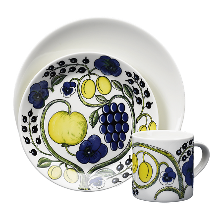 Paratiisi är en älskad klassiker från Arabia, designad av Birger Kaipainen. Mönstret är djärvt, färgglatt och är fint att använda både till vardags och fest.