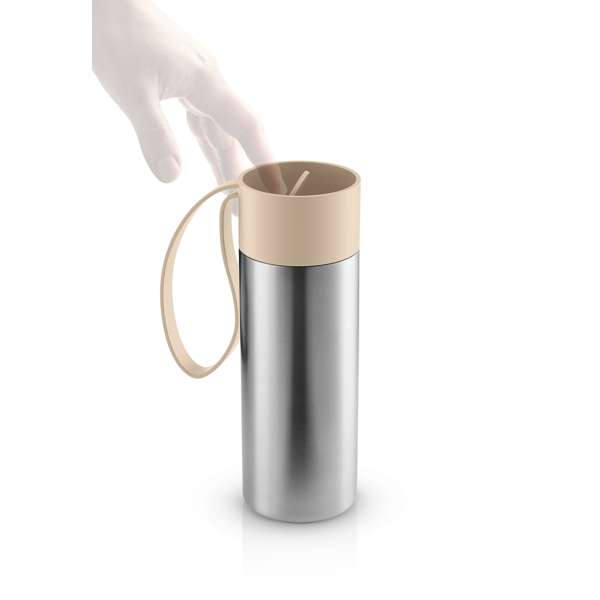 Den praktiska termosmuggen To Go Cup kan tas med överallt. Locket är lätt att öppna och stänga i farten tack vare klickfunktionen som enkelt kan hanteras med en hand.