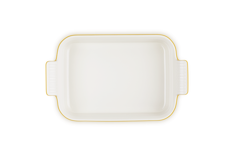 Den här Heritage-formen i stengods är ett viktigt kökstillbehör. Dess rektangulära form passar till alla slags ingredienser, vilket gör den mycket användbar i vardagen till både ugnsrostning, bakning, marinering och servering. Den har snäckformade handtag som gör den enkel och säker att greppa och flytta omkring, och de höga sidorna ger dig gott om plats för dina rätter.