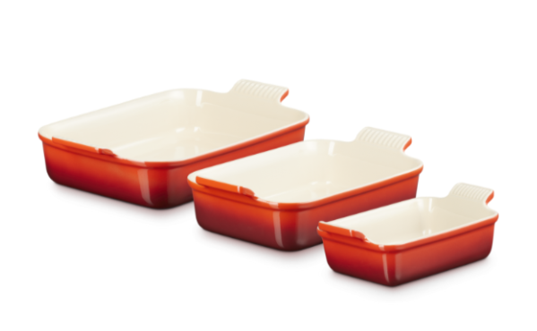 Denna trio av Heritage rektangulära formar i 19, 26 och 32 cm är en hyllning till klassisk kulinarisk stil och redo för olika uppgifter i köket. Oavsett om du marinerar, bakar, steker eller förvarar – de är redo för allt. Älskar du matlagning som går från ugn till bord? Stengodset håller maten varm längre.