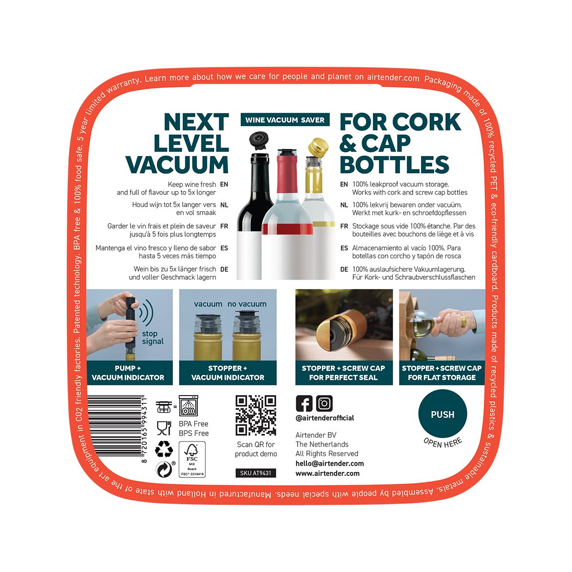 Vakuumförseglare för vin med 3st stoppers från Airtender