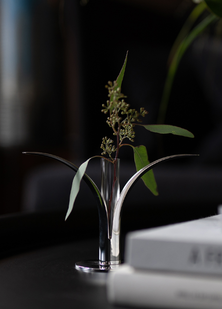 Glasvasen till Liljan är ett originaltillbehör till Liljan ljusstaken som formgavs av Ivar Ålenius Björk för världsutställningen i New York 1939.