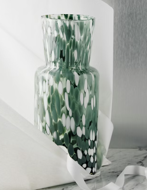 Meadow från Kosta Boda har en blomsteräng som både inspiration och uttryck. Det är en serie vaser som gör sig lika väl på egen hand som med ett fång blommor. Tack vare den glaskrossteknik som används i tillverkningen är varje vas unik. Den höga vasen summer är som gjord för att hålla upp en hel famn av tulpaner eller solrosor, eller på egen hand lysa upp ditt hem som en vacker sommardag. Design av Sara Persson.