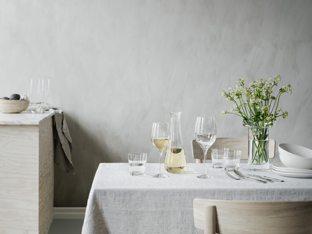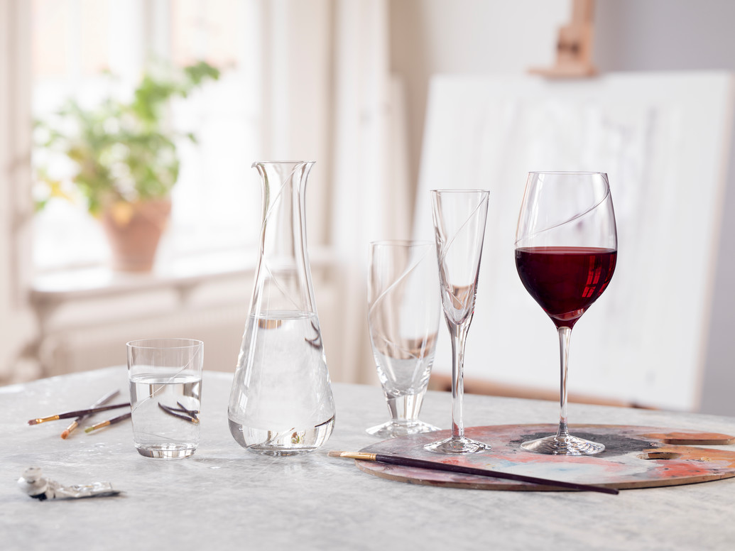 Line från Kosta Boda har funnits i produktion sedan 1982. Serien är unik med den spunna glastråden som läggs på för hand - ett bevis på det svenska kvalitetshantverket från Kosta Glasbruk. Det munblåsta vinglaset i storlek 44 cl passar för röda viner. Ett glas som går precis i linje med din stil. Design Anna Ehrner.